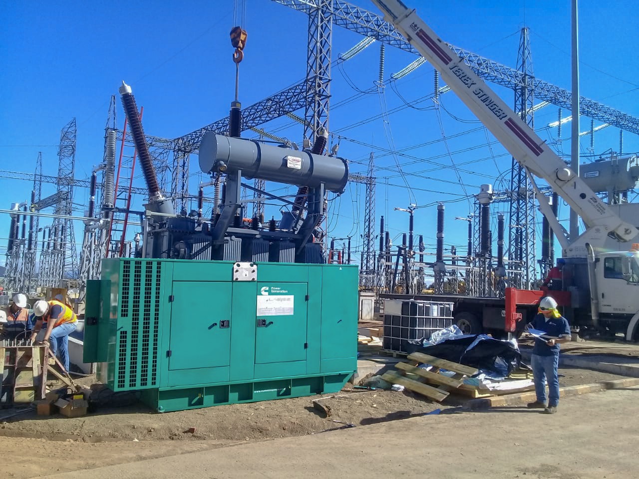 Parques fotovoltaico en Namasigüe y Nacaome, con generadores de Rentas Américas se proporcionó energía a oficinas y se realizaron pruebas a transformadores y baterías.